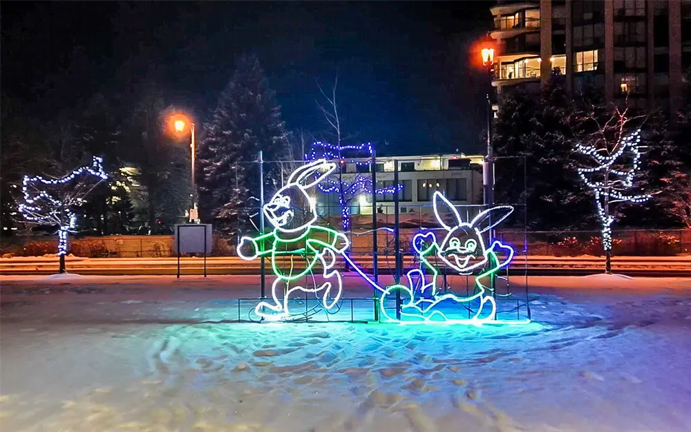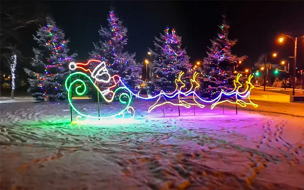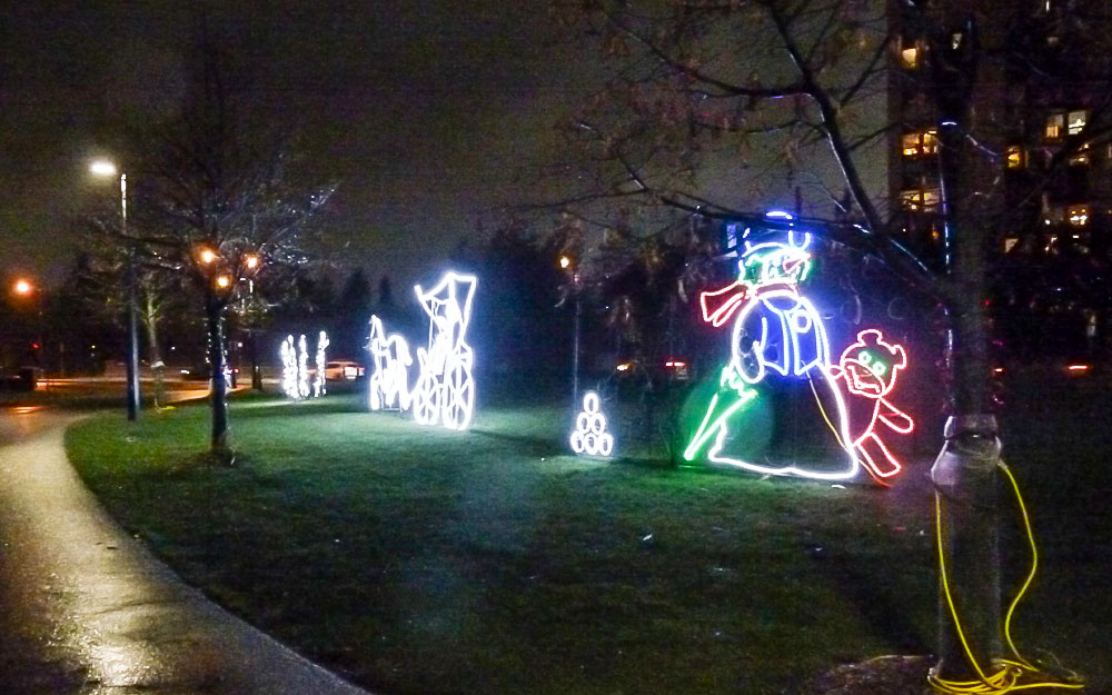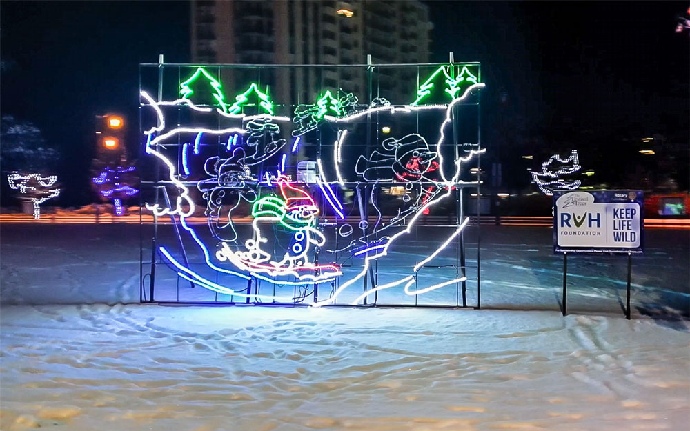 Most people think the gorgeous display of lights that appear along Lakeshore Drive during the holiday season is put there by the city, but in fact it’s our club working with generous sponsoring companies who are identified on signs throughout the park with fundraising proceeds going to the Rotary Club of Barrie. Festival of Trees lights are lit during the Santa Claus parade and remain lit till the spring. Immediately following the parade there’s a picnic with hot dogs, hot chocolate and hot cider.